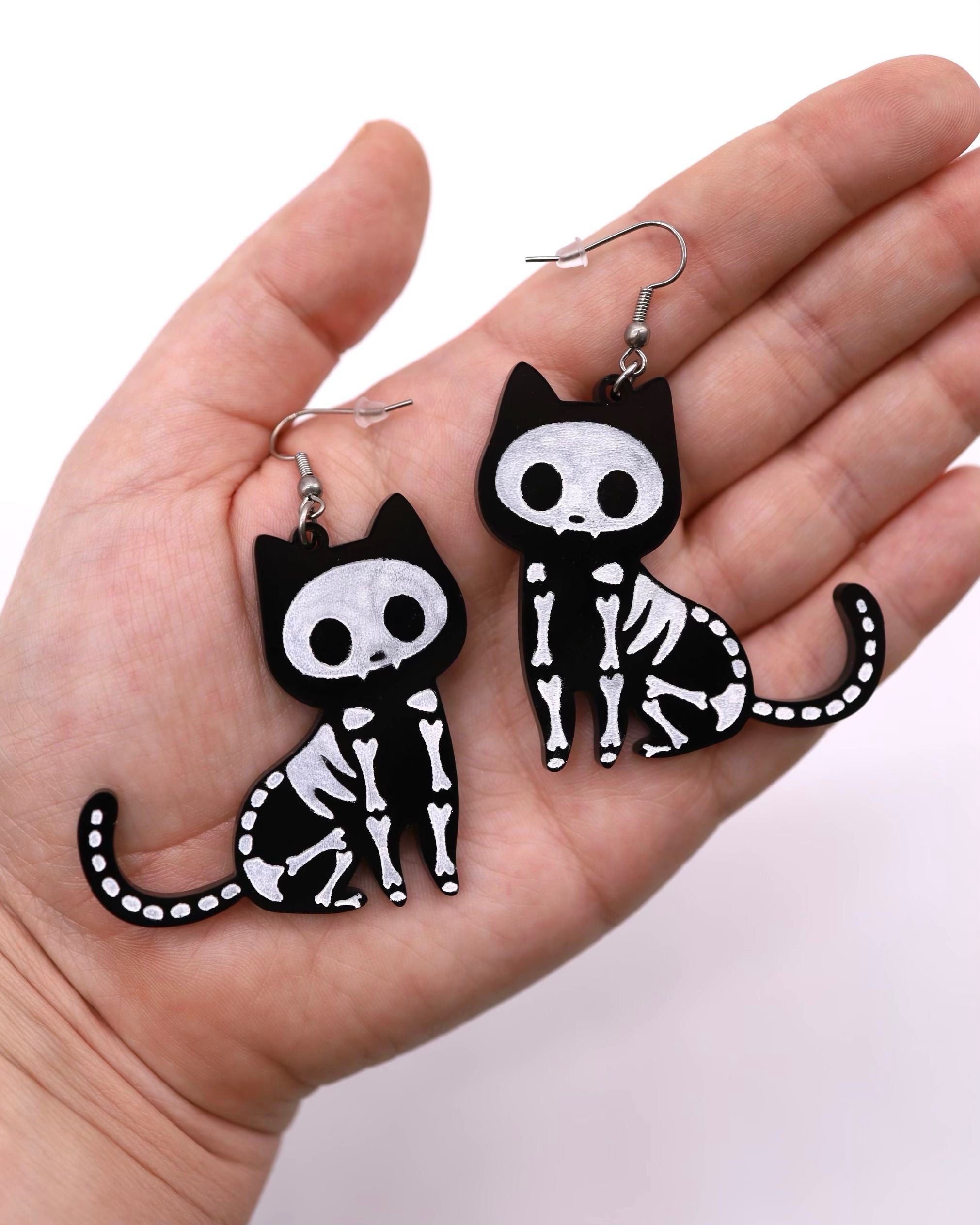 Skeleton Cat Earrings